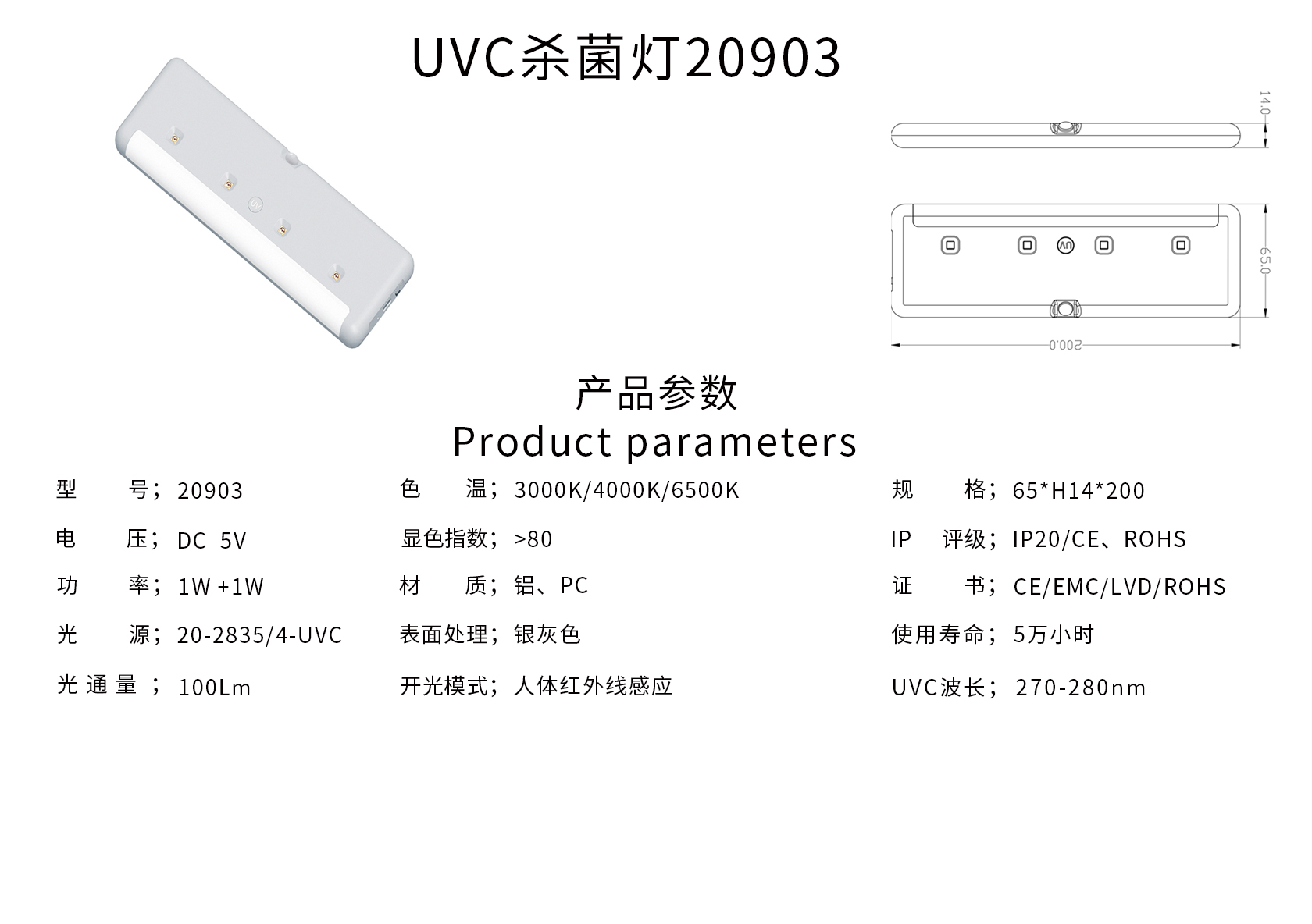 锂電(diàn)池LEDYVC殺菌燈20903