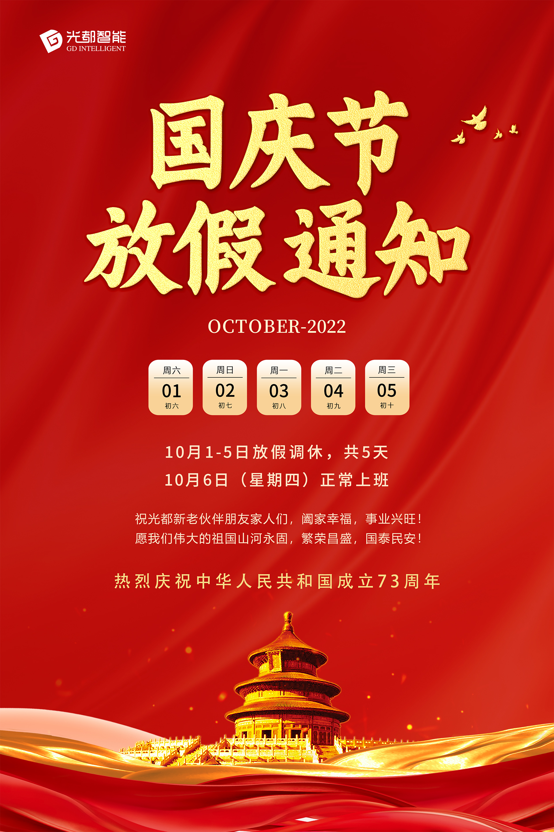 【盛世華誕/歡度國(guó)慶】慶祝中華人(rén)民(mín)共和(h♥→∞é)國(guó)成立73周年(nián)!祝光(guāng)都©←γ(dōu)新老(lǎo)夥伴朋(péng)友(yǒu)家(jiā)人(rén)們,阖家(וjiā)幸福,事(shì)業(yè)興旺,國(guó)慶快(kuài)樂(yuè)!願偉大(dà¶πδ)祖國(guó)山(shān)河(hé)永固,繁華昌盛,國(guó)泰民(mín)安!